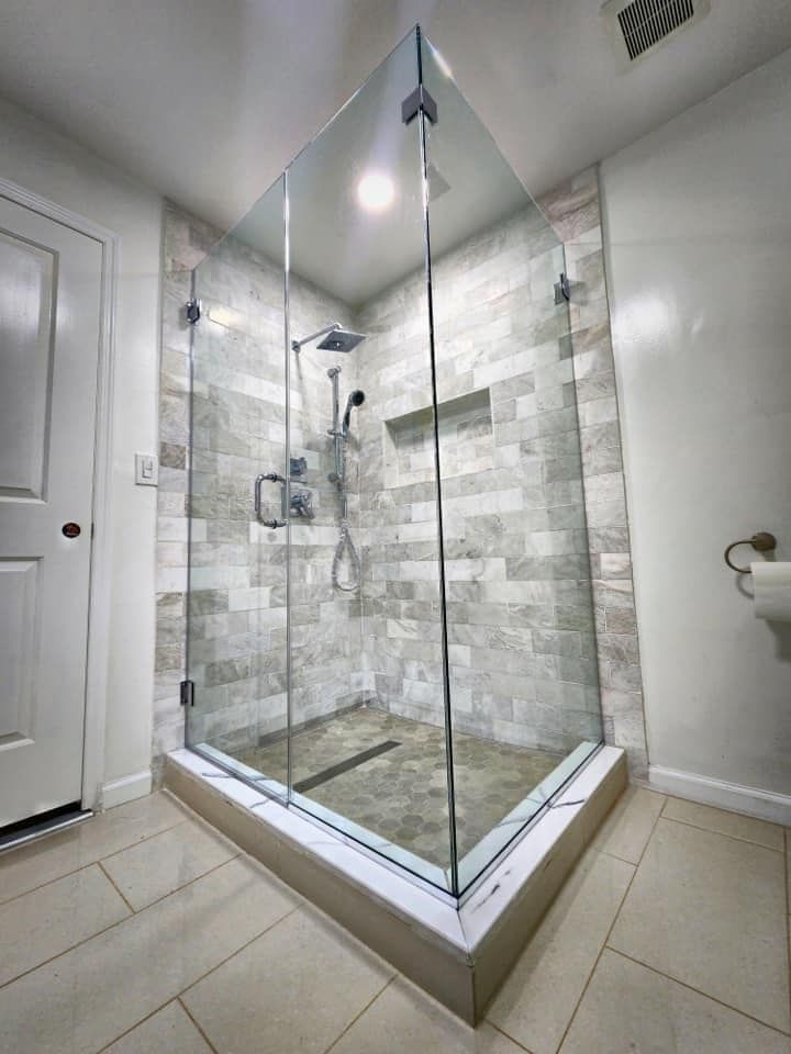 There are numerous stylistic alternatives, ranging from the most basic single door design to an inventive double door. PFM Glass & Mirrors will create the ideal shower door for your particular space, whether you want it to open to the right or left or if you need hinges higher or lower on the door. Additionally, you can customize the hardware's finish, etching, and color to fit and accentuate your bathroom's design.
